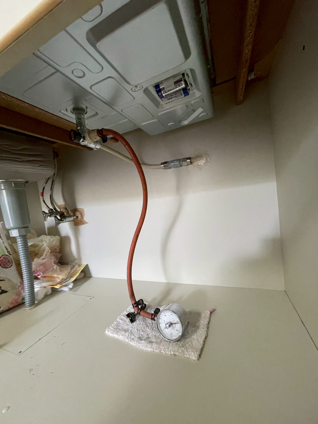 ガス管接続!微圧計で漏れ確認もしながらね!(*^^)v